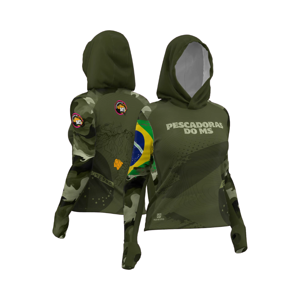 Camiseta Feminina pescadores do ms – mapa brasil musgo c/ capuz