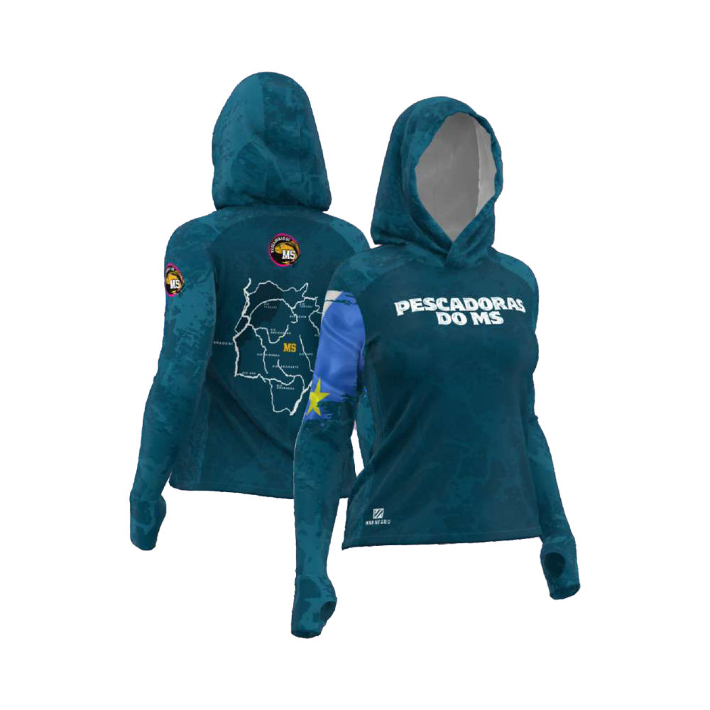 Camiseta Feminina pescadores do ms – ms azul c/ capuz